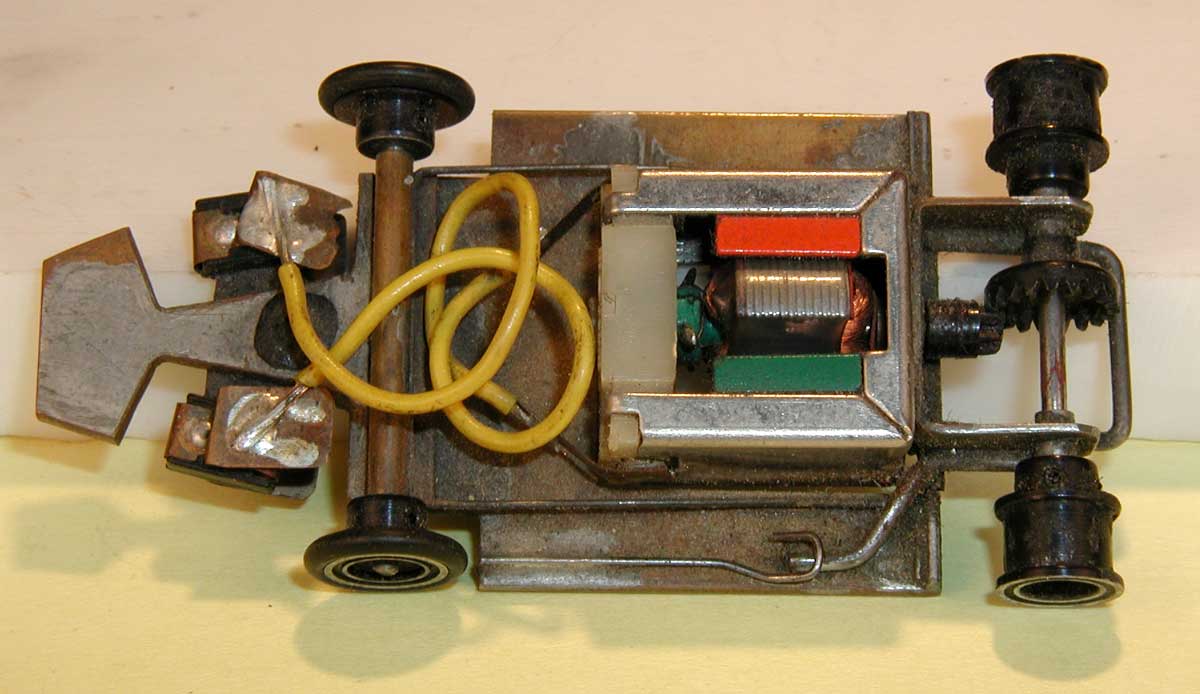 are bits of 3/32" brass tubing - primitive! The motor and bracket are soldered together to form