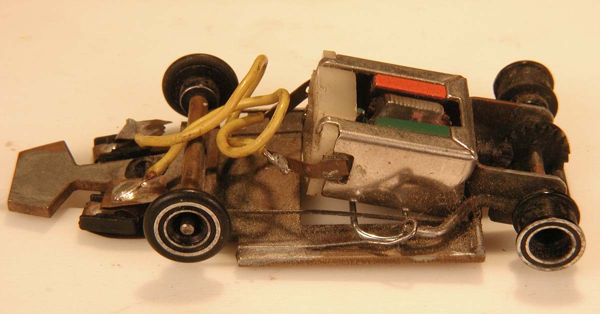 Above: The motor bracket is scratchbuilt out of .032" brass, and the rear axle bearings